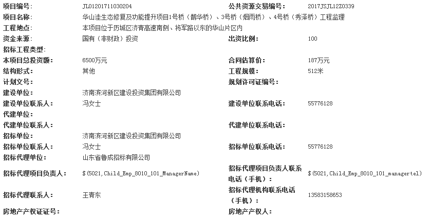 | 本次公告同時在山東省建設(shè)工程招標投標管理信息網(wǎng)、濟南建設(shè)網(wǎng)、濟南公共資源交易網(wǎng)及相關(guān)媒體上發(fā)布。 | |||||||||||||||||
