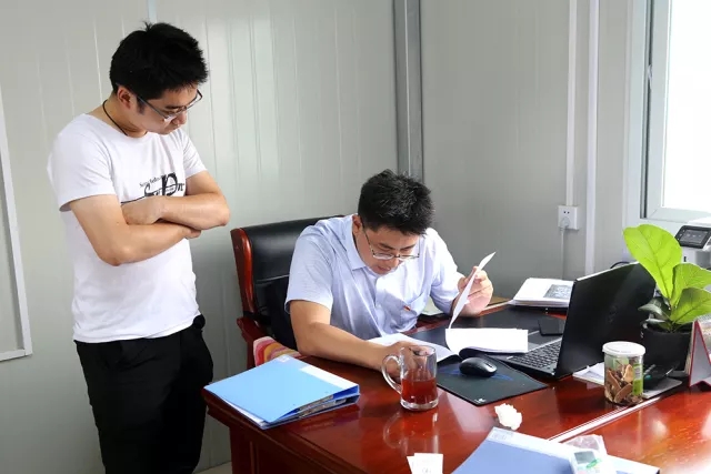 8:50濟南齊魯黃河大橋建設指揮部,我們如約見到了趙世超。一進入項目部“板房”辦公室,他就立馬打電話安排起了今天的工作,這種工作狀態,早已是他熟悉的工作節奏。從2001年畢業開始,趙世超就一直住板房、跟工程,有著17年項目一線工作經驗的他,是建設一線一名結結實實的“老將”。