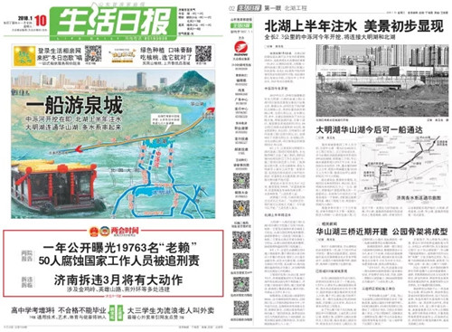 目前,大明湖-小清河連通工程(北湖)項目已有施工隊伍進場,全長2.3公里的中濼河待相關拆遷工作完成后即可開挖。