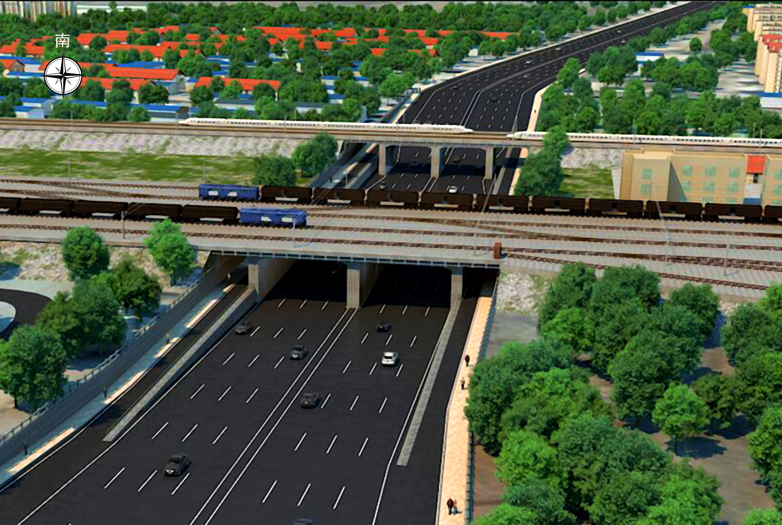 "車腳山隧道洞口效果圖"與"鳳凰路穿跨膠濟鐵路效果圖"