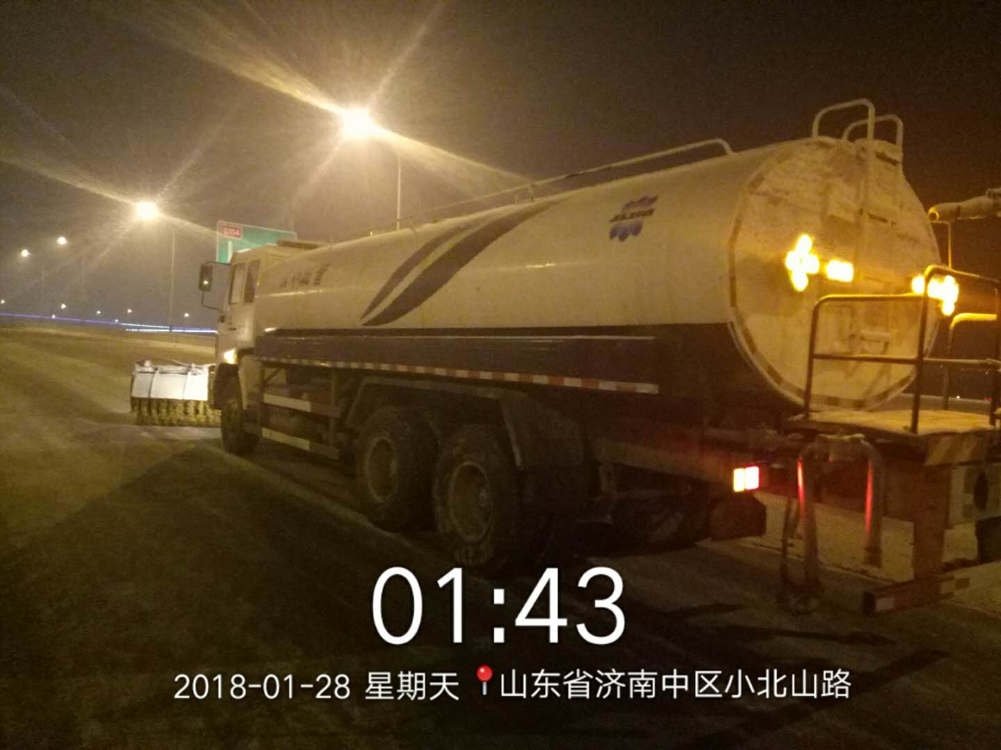 1月27日,受冷空氣影響,濟南市區大范圍降雪,為避免雨雪極端天氣對高架交通通行造成影響,按照《濟南市人民政府辦公廳關于做好冰雪和強降溫天氣防范應對工作的緊急通知》的要求,濟南市政公用資產管理運營有限公司子公司濟南泉澤建設管理運營有限公司按照"提前預防、充分準備、快速反應、協調聯動"的原則,啟動雨雪天氣應急機制。二環西南延高架運營維護小組立即出動,調動保潔分包單位開展鏟雪除冰、路面融雪等應急處置工作。