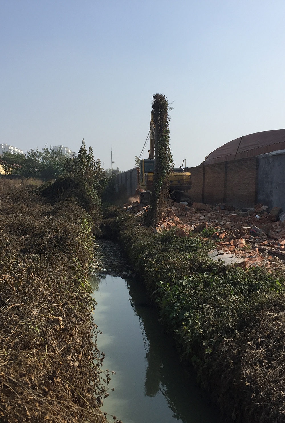 濟空四站邊溝是由拖機路自東向西的一條雨污混流的溝渠,主要污水來源為附近居民的生活污水,全長約1.56公里,斷面為1.6×1.8米,大部分是路面下的暗溝,約600米為明溝,明溝內垃圾、淤泥沉積,黑臭水不斷,黑臭等級為重度黑臭水。