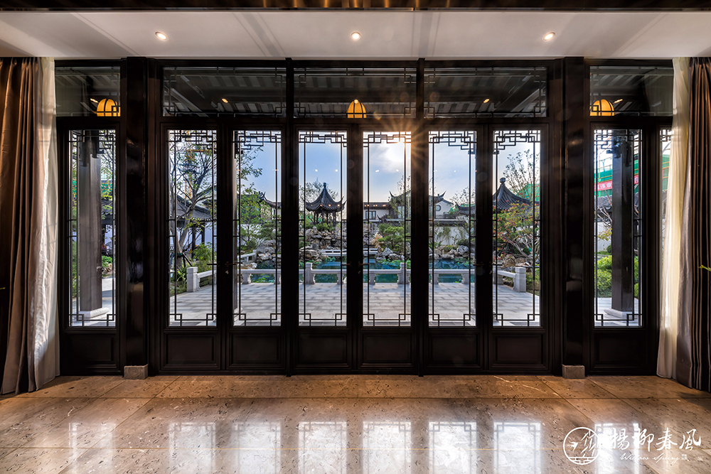 此次對(duì)外開(kāi)放的樣板房一種為新亞洲風(fēng)格,以“禮”、“樂(lè)”為創(chuàng)作靈感,巧妙借用了中式園林框景的手法來(lái)演繹時(shí)尚的氣質(zhì),將室外園林造景與室內(nèi)裝飾相結(jié)合,是古典與現(xiàn)代的一次碰撞。在空間布局上,多處采用中軸對(duì)稱的傳統(tǒng)中式手法,大氣之中也展現(xiàn)著家族禮序。南北雙庭院、連接私享露臺(tái)的主臥套房、挑空設(shè)計(jì)的大面積地下空間,處處彰顯著大家風(fēng)范,在古樸的韻味中體現(xiàn)出一份現(xiàn)代的質(zhì)感。