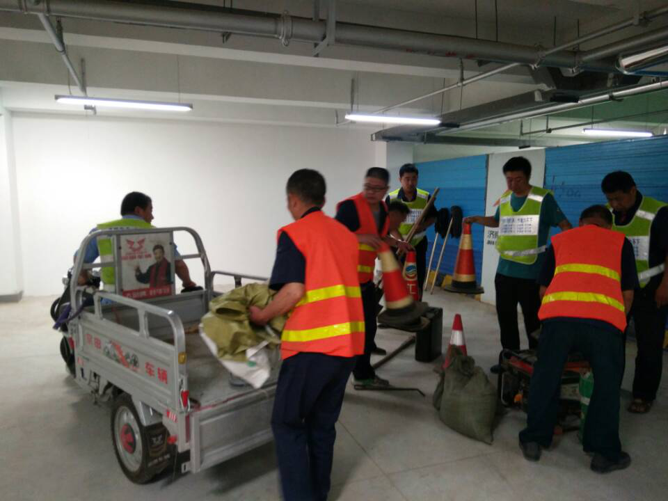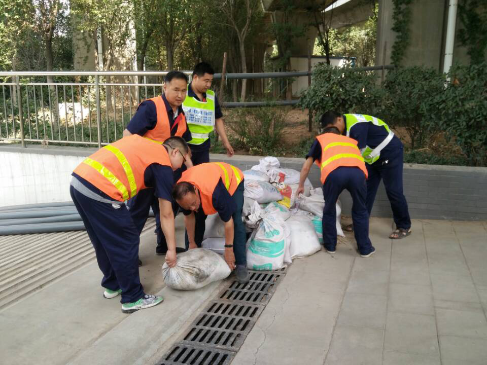 2、搶險救援組人員緊急集合,從庫房領取防汛器具,迅速奔赴現場搶險。