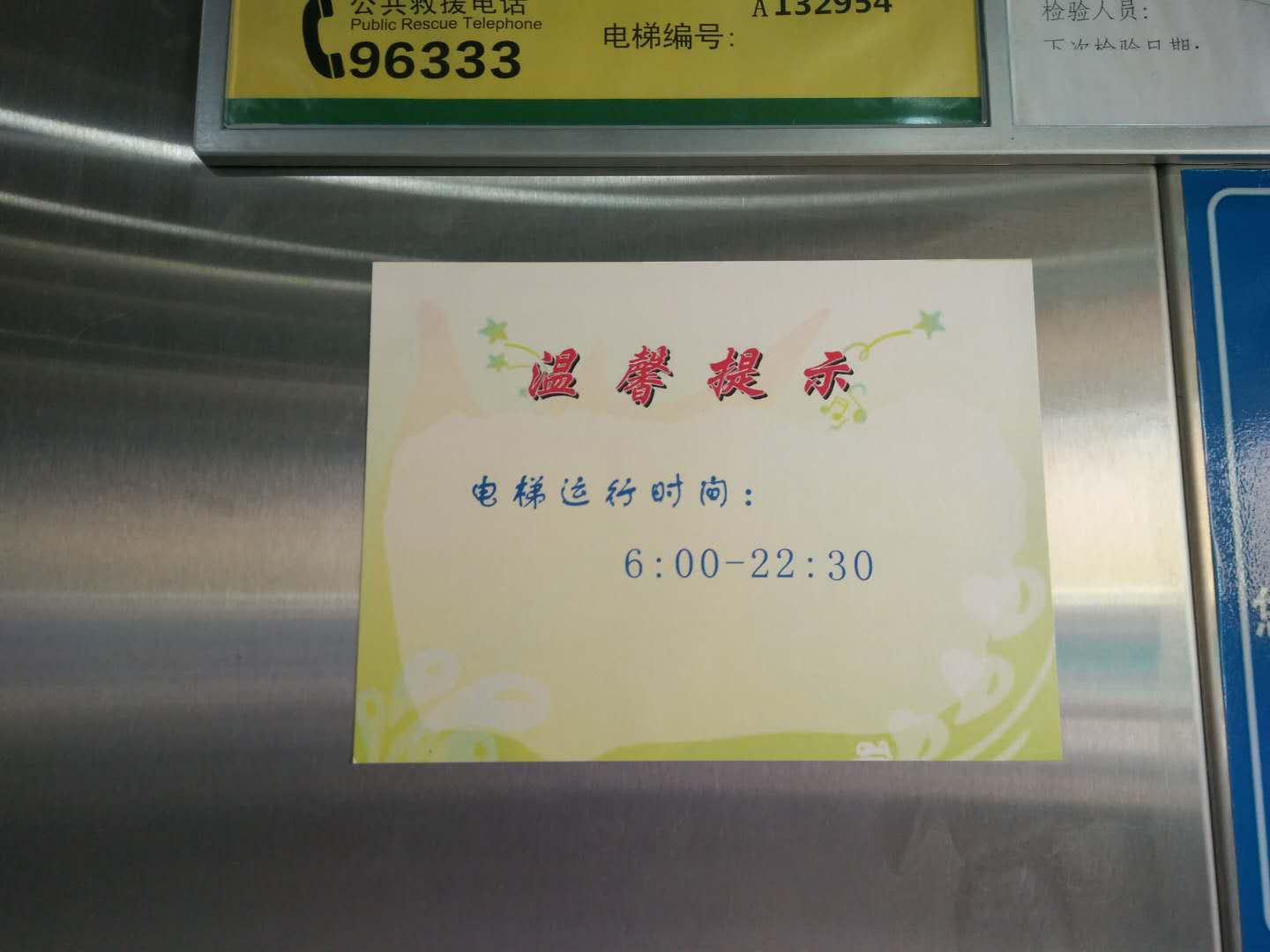 人行天橋6座電梯原運(yùn)行時間為早晨6:00至夜間21:00。自2018年6月1日起,公司運(yùn)維管理人員增加工作時間,將電梯夜間運(yùn)行時間延長至22:30。