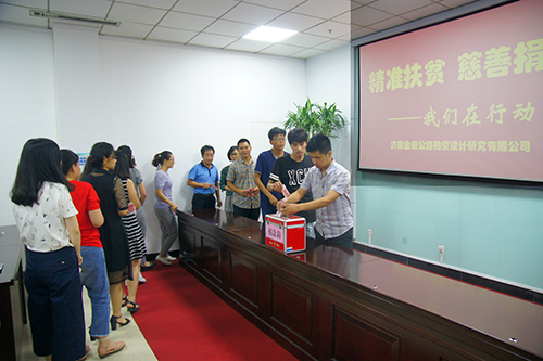 為全面踐行習近平新時代中國特色社會主義思想,深入貫徹落實習近平總書記“精準扶貧、精準脫貧”要求,弘揚中華民族扶貧濟困的傳統美德,鼓勵干部職工積極投身慈善事業,根據集團《關于開展2018年“精準扶貧慈善捐款”活動實施方案》的要求,6月15日下午,濟南金衢公路勘察設計研究有限公司組織全體黨員干部群眾在第一會議室開展“精準扶貧慈善捐款”活動。