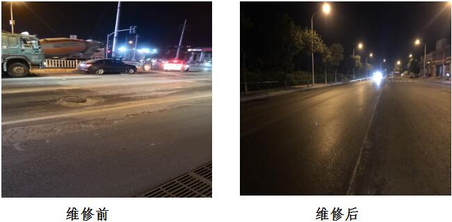 針對市民群眾反映文清小學門口路面破損問題,由于超載車輛過多,路面塌陷嚴重,教師學生及過往人員較多,多次修復(fù)后路面問題依舊沒有得到解決,巡檢人員了解情況后決心集中力量從基層處理該處破損,采用大型洗刨車,重做基層,新瀝攤鋪有效解決了該處破損,得到了老師家長的一致認可。