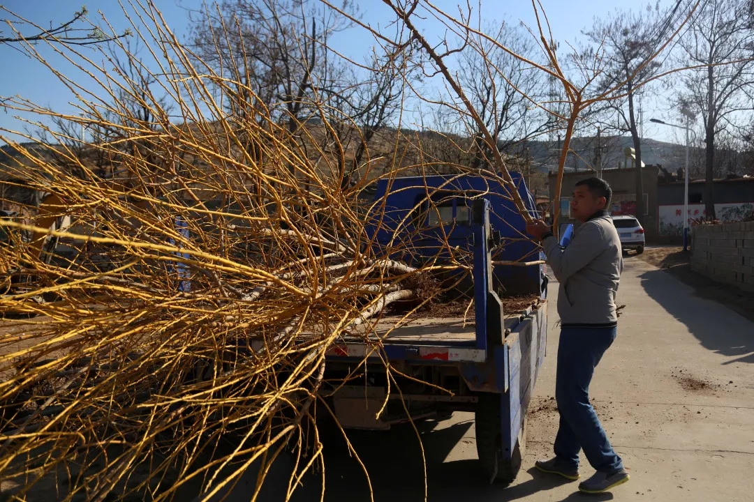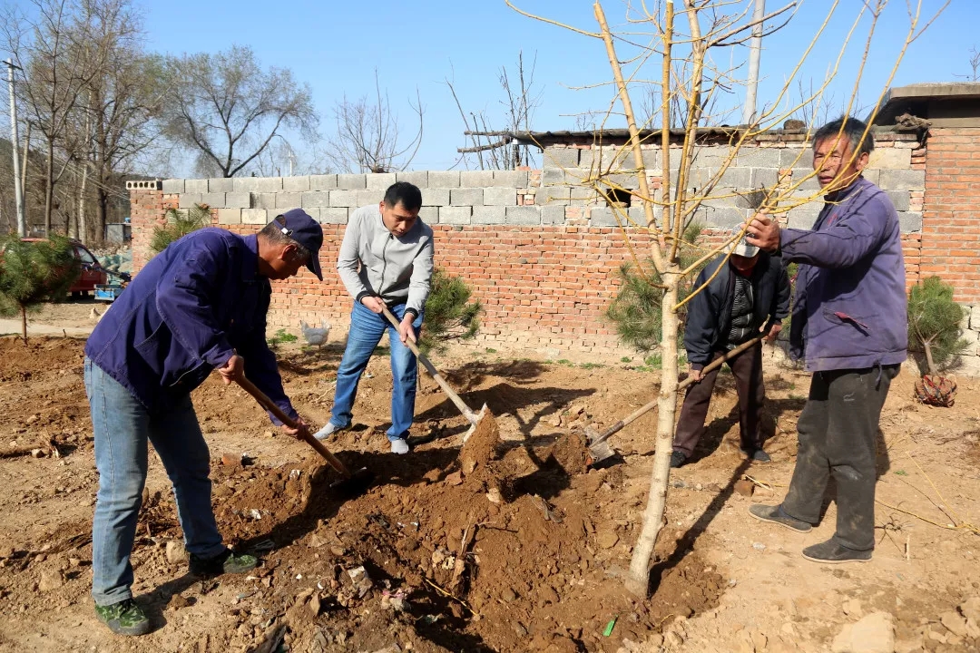 今天的第一項工作,是要在村里的公共裸土上植樹增綠。“這片位于村口的空地原來是塊荒地,時間長了成了處垃圾場,既污染環境又影響村容村貌,按照鎮里裸土覆綠的要求,我們用爭取的1萬元資金購買了黃金槐、黑油松、櫻花等好存活且觀賞性較強的苗木,把原荒地整平后進行裸土覆綠”王棟棟說道。