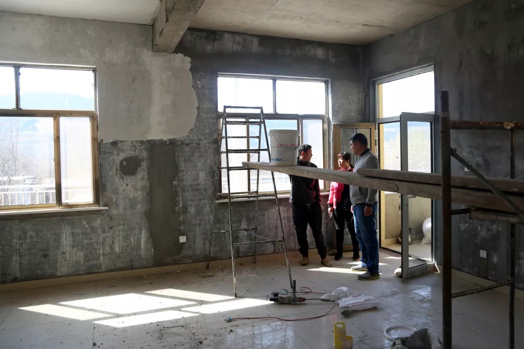 10:15王棟棟和任書記來到了即將建成的大黃崖村黨群服務中心,督促落實服務中心的收尾工作。這處600平方米的村級辦公場所和幸福院,是整合了集團幫扶資金、民政資金、企業捐助資金共計74萬元建設的,計劃在5月底前正式投入使用。