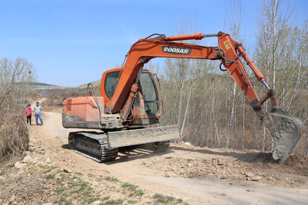 11:20王棟棟和任書記在生產路整修現場。村北側的生產路是連通大黃崖村與農田果園的道路,也是通往鄰村陶裕村最便捷的道路。去年受大雨影響,道路嚴重受損,隨時有塌陷的危險,給群眾生產生活帶來諸多不便。他帶領村兩委和部分黨員群眾,利用三天時間對道路進行了修復,搶修出了一條臨時通道。要徹底解決道路塌陷問題,就一定要重新翻修,日前,他從縣交通部門爭取的資金已經到位,施工隊伍已進場施工,目前正處于找平碾壓過程中,很快就將進行道路硬化,一周時間即可恢復通行。
