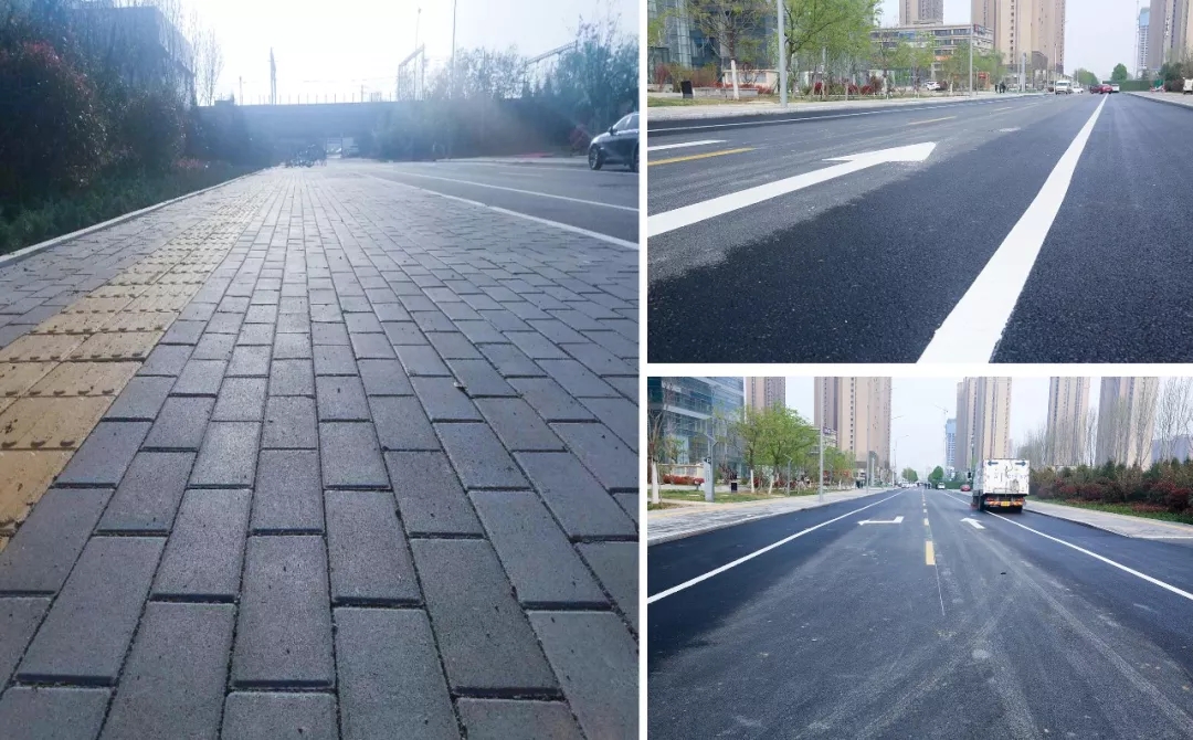 在各參建單位的配合下,先后完成工程施工范圍內的地下管線及道路結構層施工。并于4月5日完成瀝青面層攤鋪,4月7日完成人行道花磚鋪設。