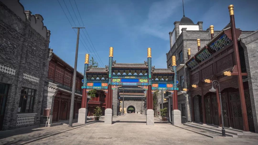 由濟南城市建設集團、華誼兄弟傳媒股份有限公司、華誼兄弟實景娛樂有限公司合力打造的華誼兄弟電影城(濟南)老濟南街占地85畝,是清末民國初期為時代背景的北方街區,中西式建筑風格交相輝映,包含城門、商店街、火車站、醫院、警察廳、城隍廟等,共計72棟單體建筑。