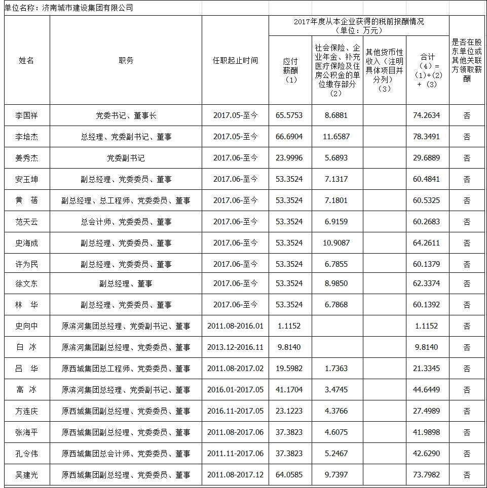 市屬國有企業(yè)2017年度企業(yè)負責人薪酬情況一覽表