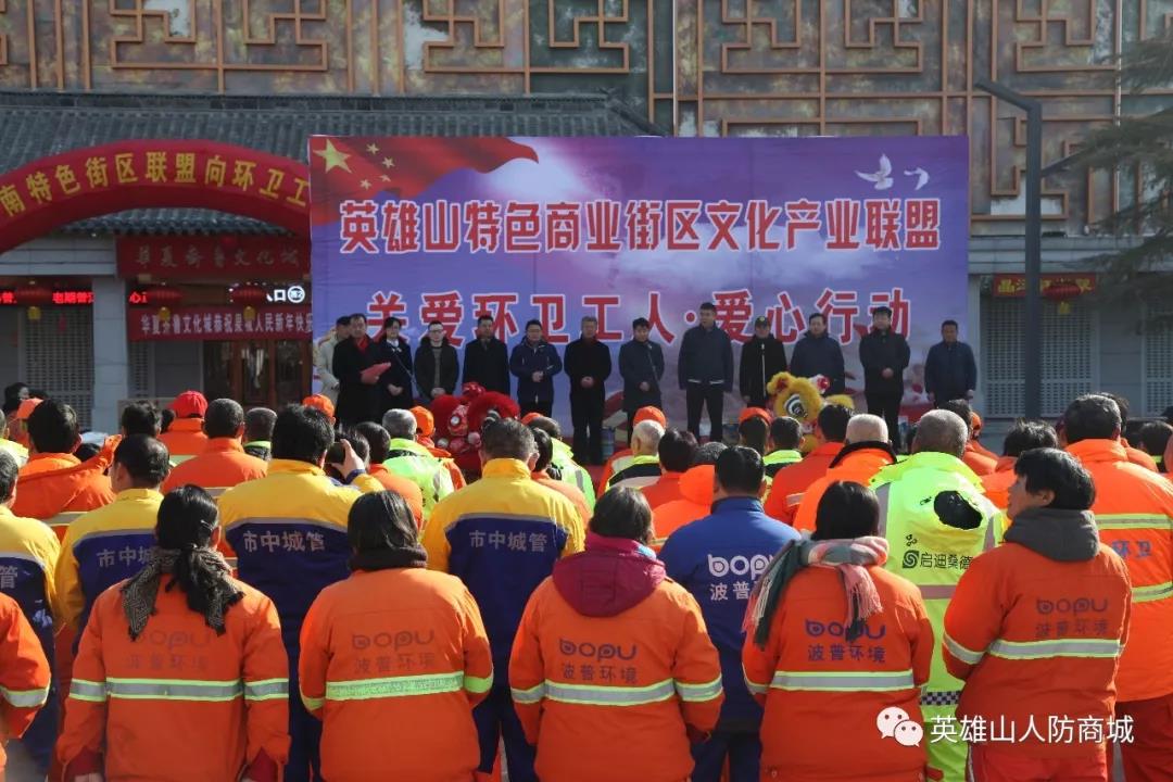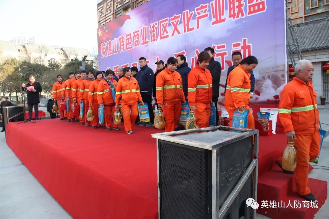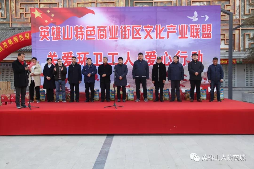 2019年2月1日,農(nóng)歷臘月二十七,濟(jì)南市英雄山人防工程管理有限責(zé)任公司作為英雄山特色商業(yè)街區(qū)文化產(chǎn)業(yè)聯(lián)盟成員單位,與多家聯(lián)盟單位聯(lián)合發(fā)起了中國濟(jì)南特色街區(qū)聯(lián)盟“關(guān)愛環(huán)衛(wèi)工人,愛心行動”主題公益活動,為服務(wù)于街區(qū)的環(huán)衛(wèi)工人們獻(xiàn)上節(jié)日的祝福,并送上了個人捐款與農(nóng)副產(chǎn)品。市中區(qū)副區(qū)長潘建軍、四里村街道辦事主任崔珉受邀參加了本次活動。