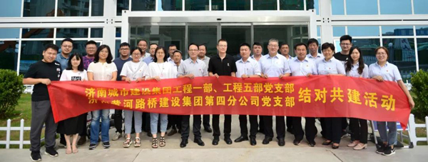 為深入貫徹習近平新時代中國特色社會主義思想和黨的十九大精神,推進全面從嚴治黨在基層走深走實,著力構建基層黨組織互幫互助常態化,形成優勢互補、共同提升的基層黨建工作新格局,7月9日下午,濟南城市建設集團工程一與工程五部黨支部聯合濟南黃河路橋第四分公司黨支部在張劉片區項目部開展結對共建活動。濟南城市建設集團副總經理孫培梁,工程一與工程五部黨支部書記郭正,濟南黃河路橋集團公司黨委委員、副總經理楊中生,第四分公司黨支部書記、分公司經理伏燕云出席會議,支部全體黨員參加活動。