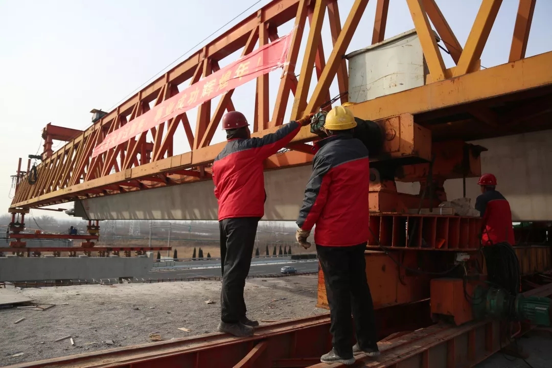 在嚴格落實各項防疫措施的前提下,項目部有序開展復工趕工,努力將疫情對項目建設帶來的影響降到最低。春節期間,項目組織留守的架梁工人,管理人員組成青年突擊隊進行交通導改、箱梁架設,春節期間共架設箱梁11片,順利跨越青銀高速(青島至銀川方向)。