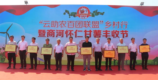 活動中,參加單位相關負責同志共同啟動本次商河懷仁甘薯豐收節;濟西農業負責同志帶領聯盟內10家企業代表分別與10家懷仁甘薯種植社簽約,并上臺接受突出貢獻企業榮譽牌。