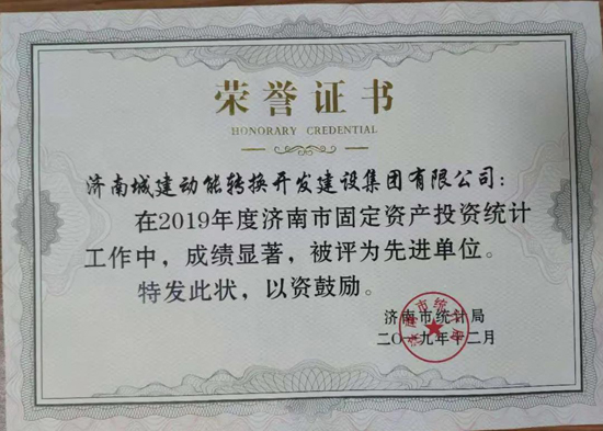 近日,2019年度濟(jì)南市固定資產(chǎn)投資統(tǒng)計(jì)工作先進(jìn)集體、先進(jìn)個人名單公布。濟(jì)南城建動能轉(zhuǎn)換開發(fā)建設(shè)集團(tuán)有限公司榮獲濟(jì)南市統(tǒng)計(jì)局“2019年度濟(jì)南市固定資產(chǎn)投資統(tǒng)計(jì)工作先進(jìn)單位”稱號,冷見奇、潘文凱、周宇三名同志被評為“固定資產(chǎn)投資統(tǒng)計(jì)工作先進(jìn)個人”。