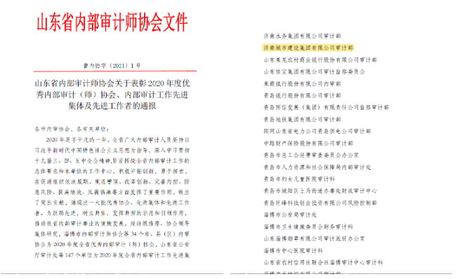 今年以來,通過加快建章立制,明確規定了審計年度計劃制定、方案制定、證據收集、底稿日志編寫、報告質量控制、檔案管理等全流程標準,逐步形成了一整套行之有效的內部審計制度體系,并榮獲“山東省內部審計工作先進單位”稱號。