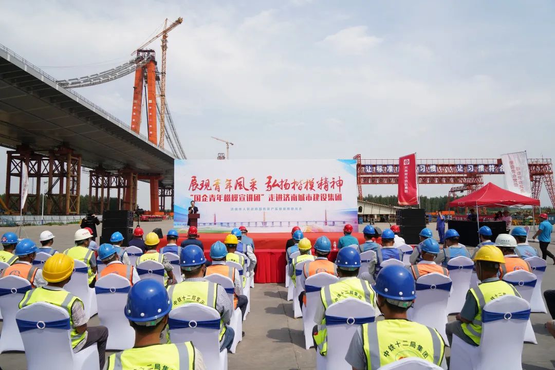 6月7日下午,濟南市“國企青年楷模宣講團”第二期宣講走進濟南城市建設集團,在鳳凰黃河大橋施工現場開展青年先鋒楷模事跡分享會。濟南市國資委黨委委員、副主任周蒨,市委黨史學習教育第十四巡回指導組副組長殷軍、組員馬俊海,濟南城市建設集團副總經理許為民,市國資委、建設集團相關處室負責人及一線職工代表50余人共同聆聽。