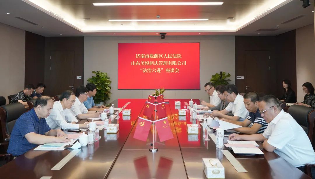 史海成代表集團及美悅公司對工作組的到來表示熱烈歡迎,對槐蔭區委及槐蔭區人民法院長期以來給予集團工作的關心、支持、指導表示衷心感謝,并指出,此次座談加深了集團及美悅公司與槐蔭區人民法院的溝通交流,堅定了企業高質量健康發展的信心,增強了企業抗風險能力,為企業的健康有序發展提供了堅實有力的法治保障,集團將與槐蔭區人民法院建立長效溝通機制,積極履行社會責任,形成合力,為槐蔭區經濟建設作出更大貢獻。