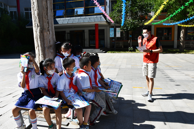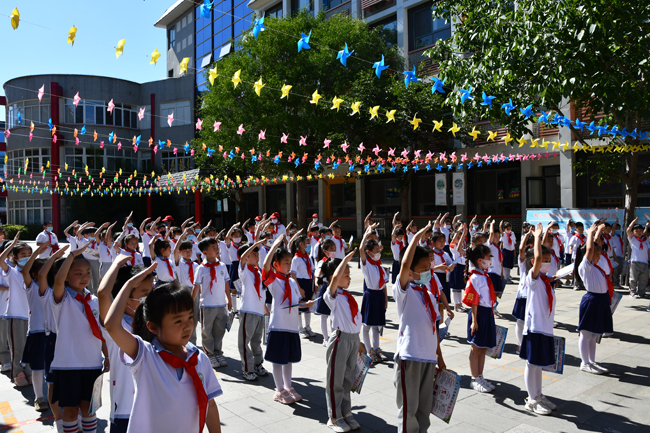 活動中,志愿者身著紅色志愿者馬甲,與小朋友們進行親密互動,為孩子們佩戴少先隊隊徽,以通俗易懂的方式為大家講解少先隊知識、安全防疫知識,提醒提高安全防護意識。志愿者們與小朋友們有說有笑,其樂融融,為小朋友們送去集團的關愛和祝福,祝愿孩子們開心快樂成長。孩子們用整齊的少先隊禮回應志愿者,稚嫩的童顏上洋溢著燦爛的笑容。