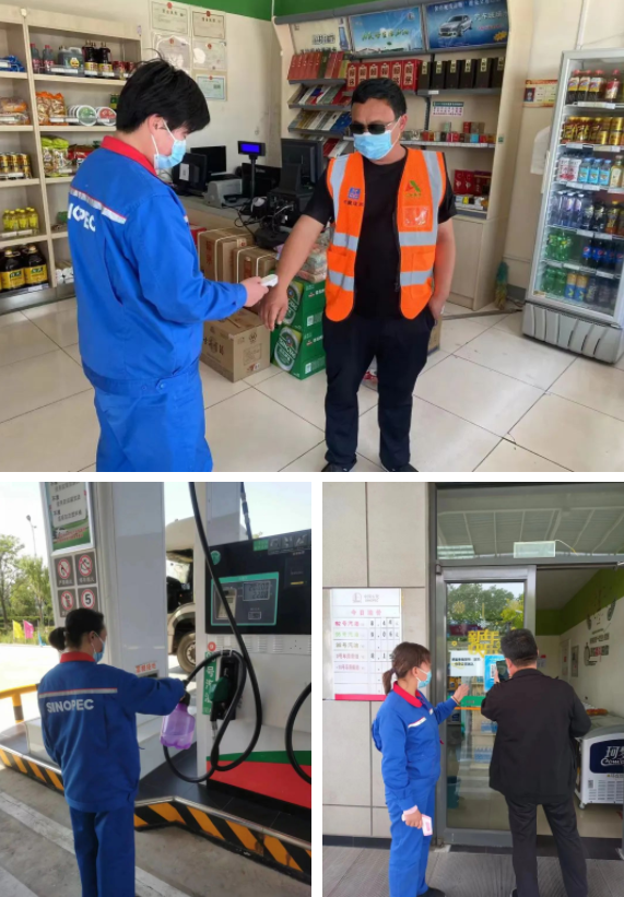 加油站作為人員、車輛流動區(qū)域,疫情防控尤為重要,各站點嚴格執(zhí)行重點區(qū)域(加油槍、營業(yè)室把手、加油機等)不少于3次消殺要求,嚴格落實掃碼、測溫等措施。同時為客戶備好消毒液、洗手液,引導客戶使用中石化“一鍵加油”,實現(xiàn)無接觸加油消費,提升客戶消費體驗和滿意度。在加強疫情防控的同時,嚴格按照“八步法”、接卸油流程進行規(guī)范操作,確保安全運營。