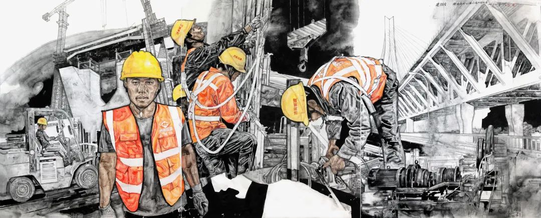 山東省中國(guó)畫(huà)學(xué)會(huì)副會(huì)長(zhǎng)、山東省美協(xié)綜合材料繪畫(huà)藝委會(huì)副會(huì)長(zhǎng)李兆虬走進(jìn)濟(jì)南黃河大橋改擴(kuò)建工程建設(shè)現(xiàn)場(chǎng),采風(fēng)創(chuàng)作了《建設(shè)者—濟(jì)南黃河公路大橋建設(shè)紀(jì)實(shí)》作品。