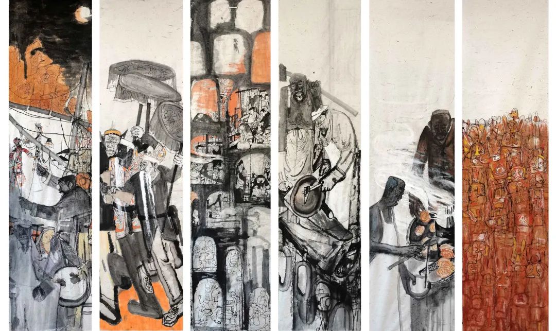 中國(guó)美術(shù)家協(xié)會(huì)會(huì)員、山東畫(huà)院簽約畫(huà)家、濟(jì)南市美術(shù)家協(xié)會(huì)理事何邦輝的《非遺系列》作品,展現(xiàn)了兔子王、濟(jì)南皮影、章丘鐵匠、龍山黑陶、油旋甜沫、鼓子秧歌等6種濟(jì)南非物質(zhì)文化遺產(chǎn)。