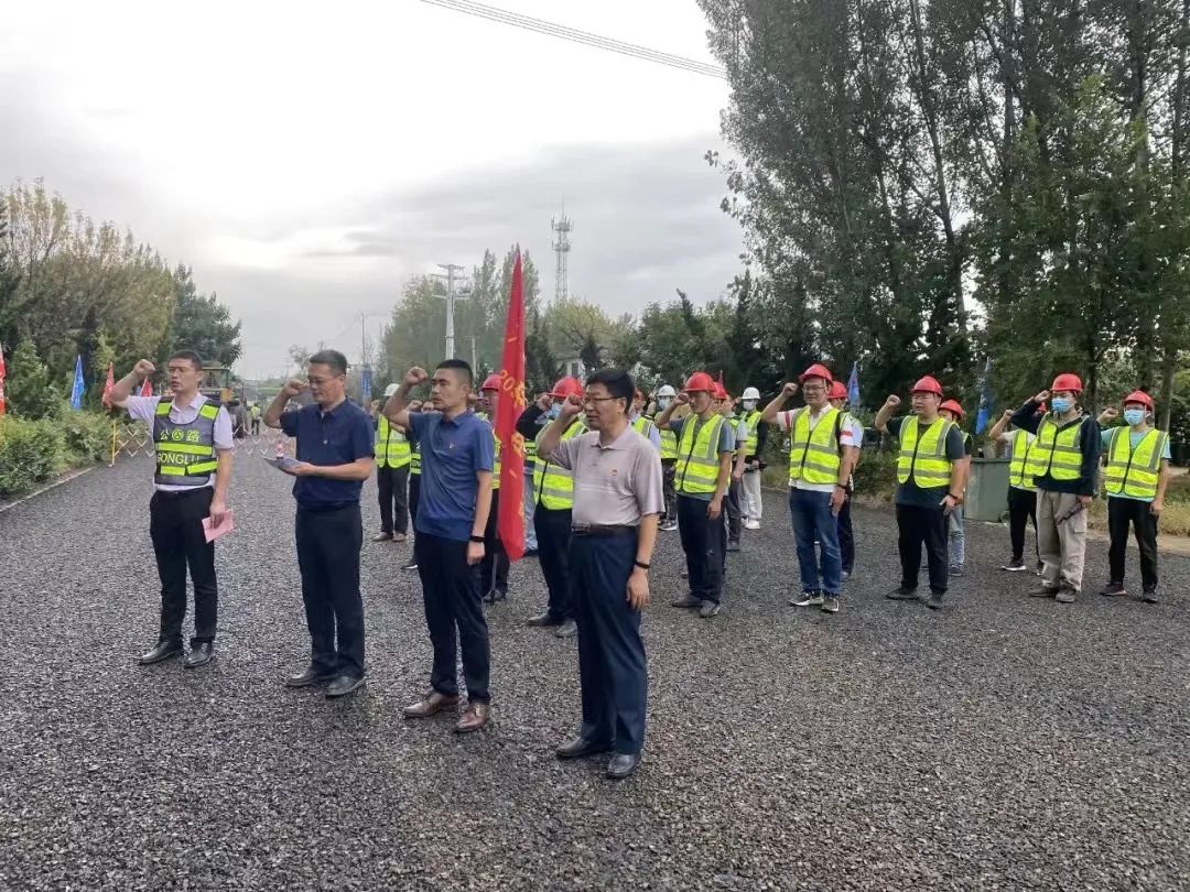 9月14日,由濟(jì)南金諾公路工程監(jiān)理有限公司負(fù)責(zé)監(jiān)理的G205山深線泰安臨沂界至蒙陰段大中修工程,在施工現(xiàn)場舉行了“黨建引領(lǐng)、共建同行”黨員突擊隊(duì)成立暨“決戰(zhàn)金秋•大干40天”誓師大會。
