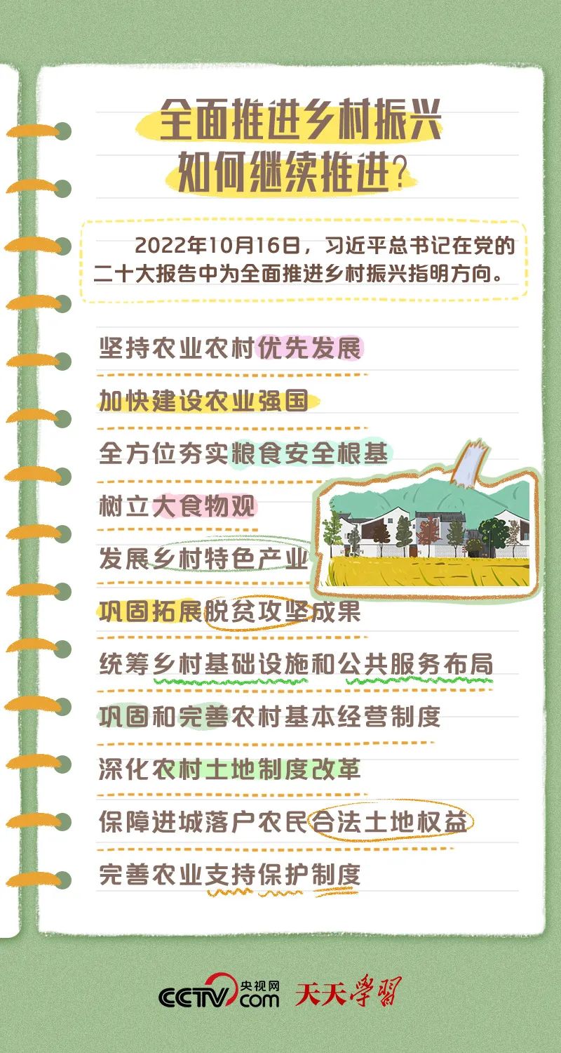 黨的二十大閉幕不到一周,總書記來到陜西延安、河南安陽兩地考察。總書記在考察中強調,要全面學習貫徹黨的二十大精神,堅持農業農村優先發展,發揚延安精神和紅旗渠精神,鞏固拓展脫貧攻堅成果,全面推進鄉村振興,為實現農業農村現代化而不懈奮斗。