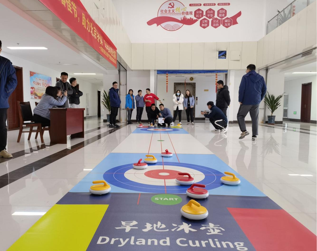 比賽現場,參賽選手全情投入。擲壺前,隊友們熱烈討論著比賽策略。擲壺時,參賽選手全神貫注,凝神靜氣。得分后,隊友們一起歡呼雀躍。冰壺運動不僅鍛煉了隊員的體魄,更讓隊員們認識到團隊合作的重要性。獨具特色的旱地冰壺運動模式,展現了“精彩、團結、協作”的魅力畫面。精彩的比賽也吸引了主管單位、兄弟單位的干部職工前來觀看,大家紛紛上前體驗,享受冰雪運動帶來的樂趣。