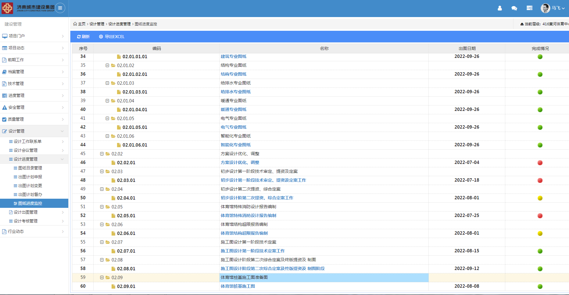 為進一步強化設計源頭管理,克服設計過程環節多、線下管控難度較大的實際,工程四部OA信息平臺開發研制設計管理業務功能模塊并在黃河體育中心項目全面應用。通過設計管理業務功能模塊,實現出圖計劃、圖紙上傳、分發簽收、圖紙會審、變更、圖紙文檔的統一編碼與存檔,有效提升設計管理中工作任務安排、接收及出圖計劃整體把控。