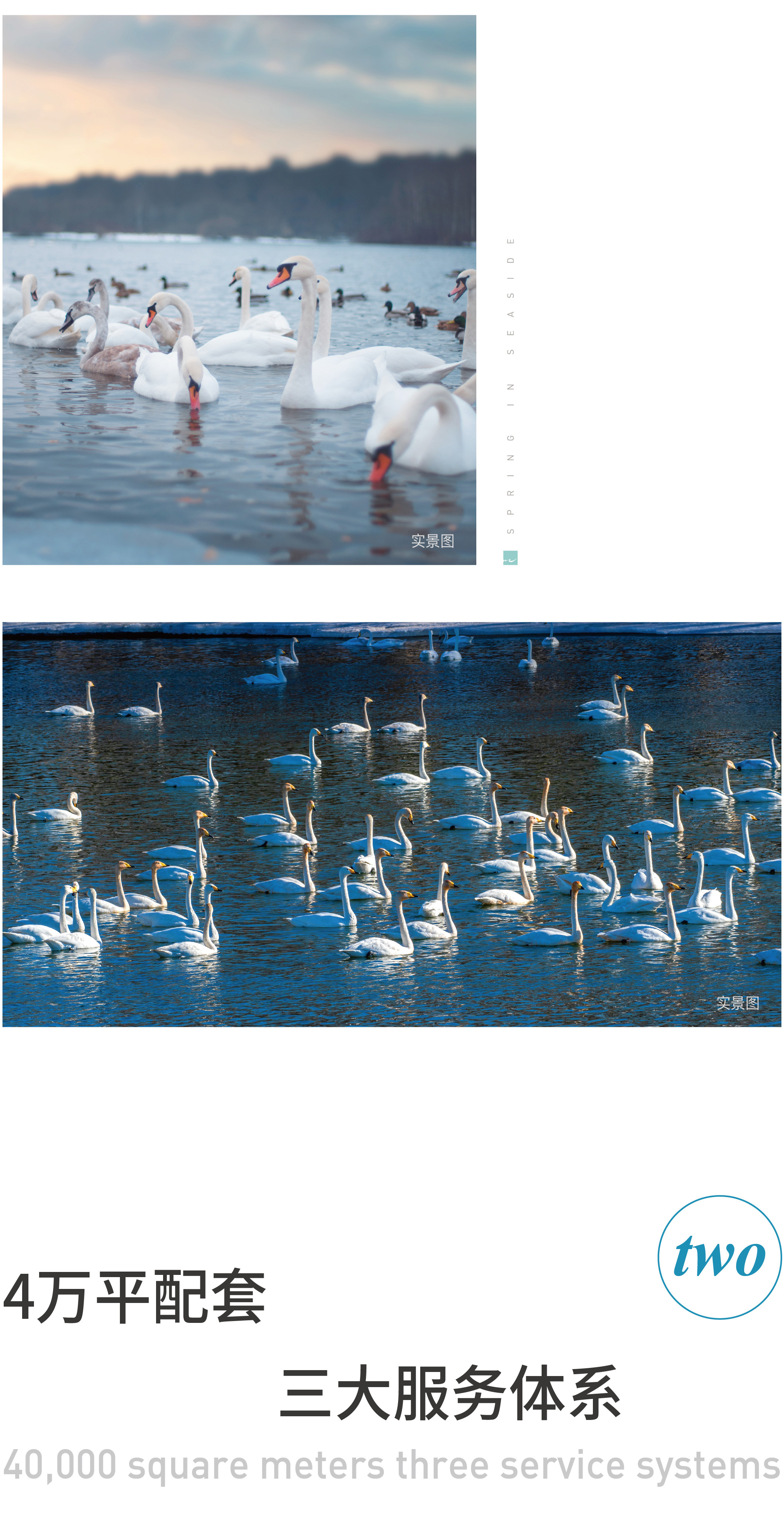 項目正坐落于威海榮成市北緯37°黃金海岸,緊鄰世界四大天鵝棲息地之一——天鵝湖生態旅游區,每年初冬季節,北方的天鵝、大雁等鳥類陸續飛到天鵝湖越冬,給安靜的小鎮帶來更多的浪漫與生機。