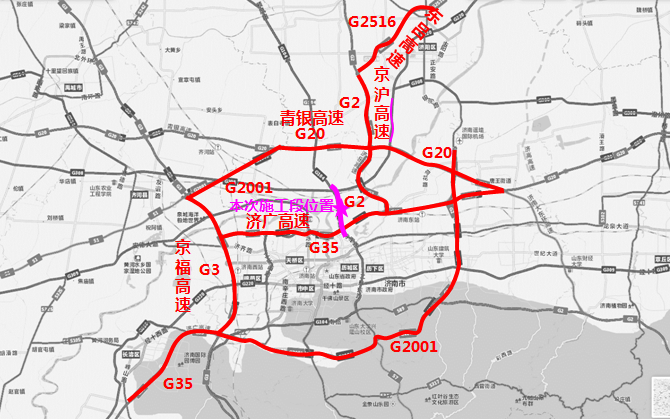 市區(qū)過路車輛可通過各城市快速路、干線道路繞行,經(jīng)濟(jì)濼路隧道、濟(jì)南黃河鳳凰大橋、濟(jì)南建邦黃河大橋等道路向北跨越黃河。