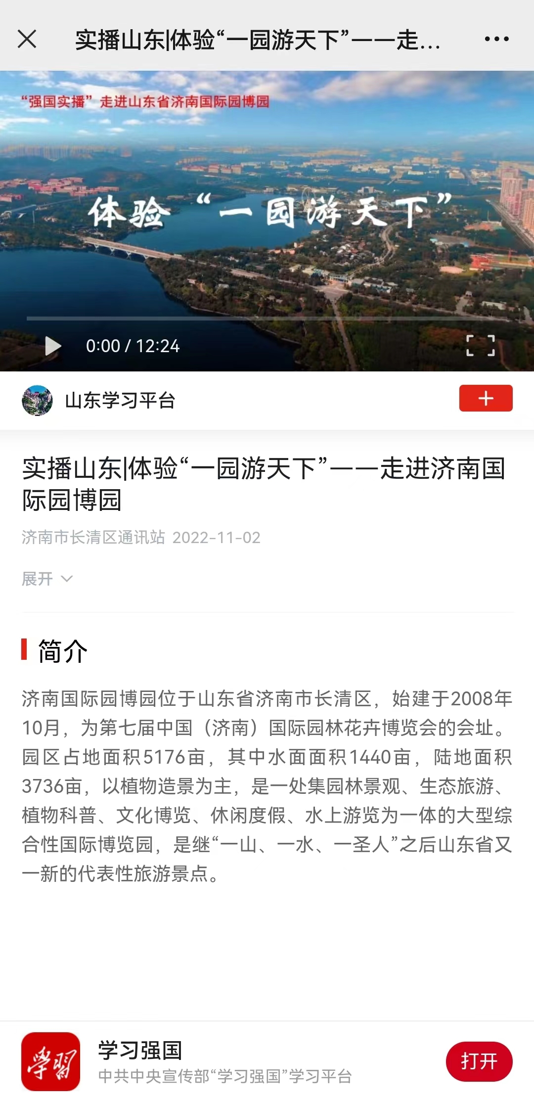 11月2日,學習強國APP“實播中國”欄目走進濟南城市建設集團建設運營的濟南國際園博園景區,讓我們跟隨鏡頭感受不同地區園林景觀特點,欣賞祖國山河的壯麗美景。