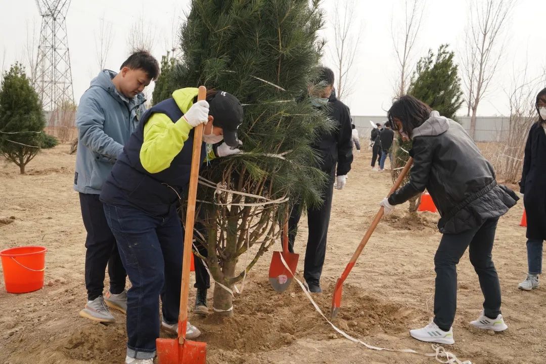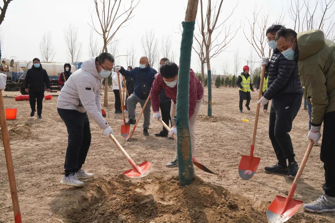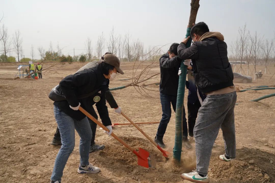 植樹活動中,大家在工作人員的指引下,密切合作、分工配合,在樹木種植范圍內,深挖基礎,厚培春壤,種下數百棵樹苗,為泉城濟南增添新綠。
