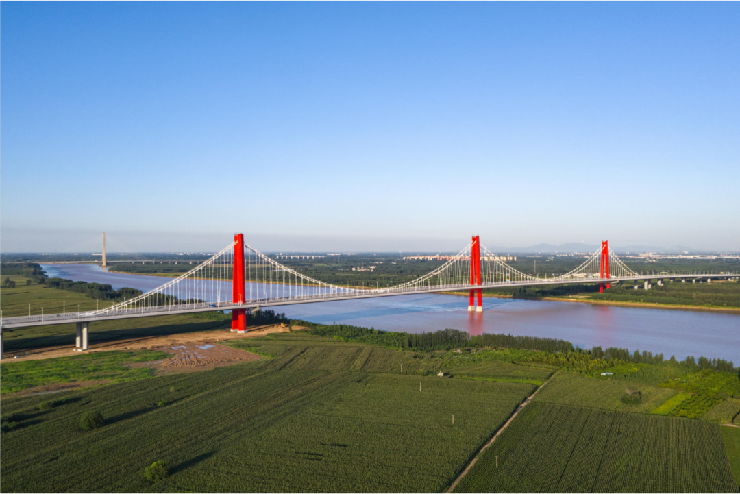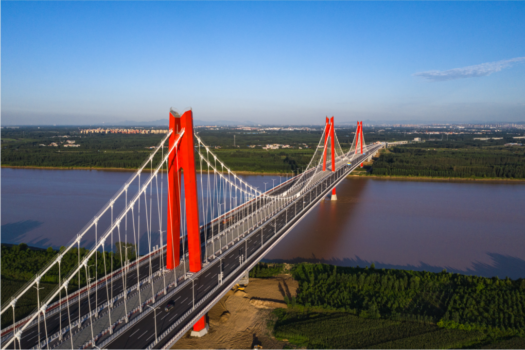濟(jì)南黃河鳳凰大橋2022年1月18日投入通車運(yùn)營(yíng)。項(xiàng)目全長(zhǎng)6683米,包括特大橋2座,其中跨黃河主橋和引橋長(zhǎng)3788米,跨邯濟(jì)至膠濟(jì)鐵路聯(lián)絡(luò)線及南水北調(diào)橋梁1323米,跨黃河橋、跨邯濟(jì)至膠濟(jì)鐵路聯(lián)絡(luò)線及南水北調(diào)橋中部同步建設(shè)必要預(yù)留的軌道交通橋梁工程,項(xiàng)目總投資63.27億元。