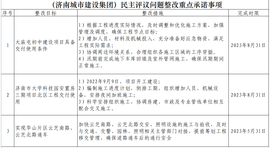 (濟南城市建設集團)民主評議問題整改重點承諾事項