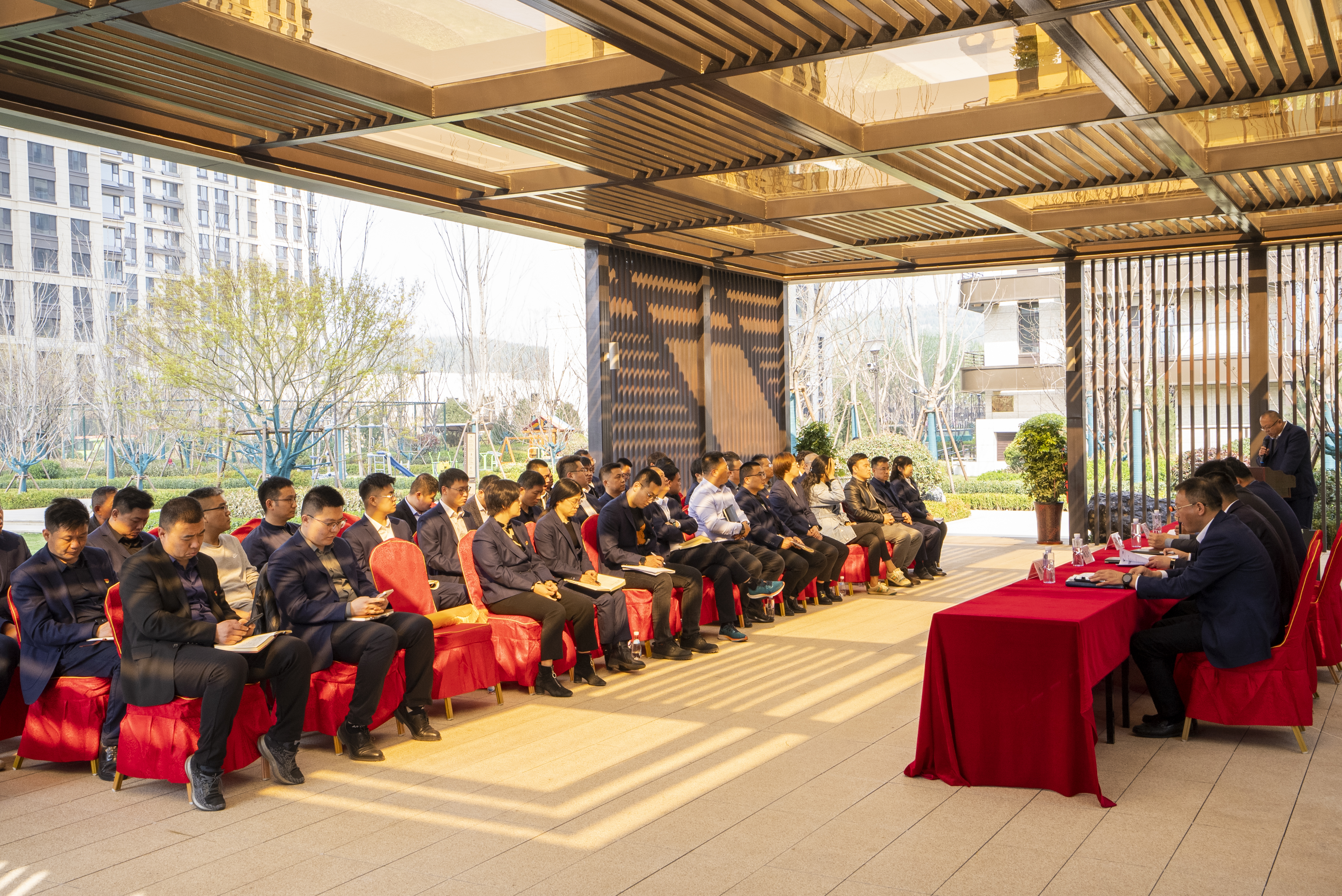 會前,與會人員參觀了天風云墅二期建設情況,該項目通過“攻堅奮戰160天、融心協力交好房”活動實現提前7個月高質量竣工交付的管理目標。
