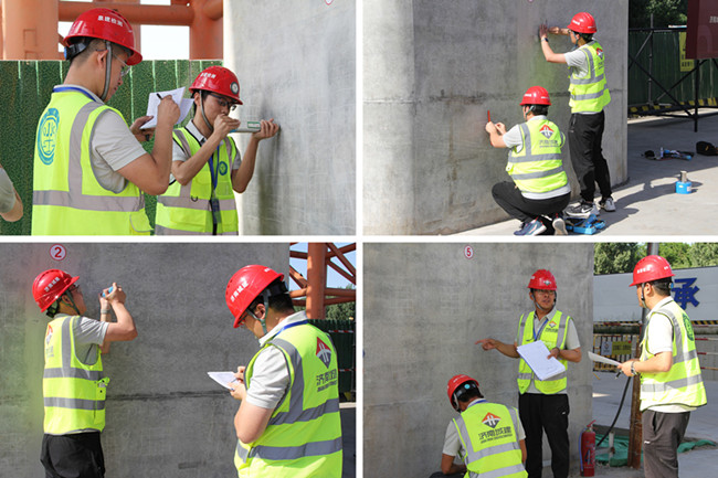 試驗(yàn)檢測(cè)技能競(jìng)賽采取理論與實(shí)際操作相結(jié)合的考試形式。理論考試與實(shí)際操作緊密相關(guān),主要考察混凝土抗壓強(qiáng)度檢測(cè)(回彈法)和鋼筋保護(hù)層厚度檢測(cè)(電磁感應(yīng)法)。10支代表隊(duì),20名參賽選手參加競(jìng)賽。賽場(chǎng)上,參賽選手們嚴(yán)格按照標(biāo)準(zhǔn)要求,現(xiàn)場(chǎng)選擇測(cè)區(qū)(測(cè)點(diǎn)),正確率定回彈設(shè)備,熟練地操作先進(jìn)儀器設(shè)備,一絲不茍讀取并記錄數(shù)據(jù)、現(xiàn)場(chǎng)計(jì)算并處理數(shù)據(jù)、判定檢測(cè)結(jié)果,充分展現(xiàn)了城建鐵軍在工程建設(shè)上精益求精,“質(zhì)”在必得的匠人風(fēng)采。