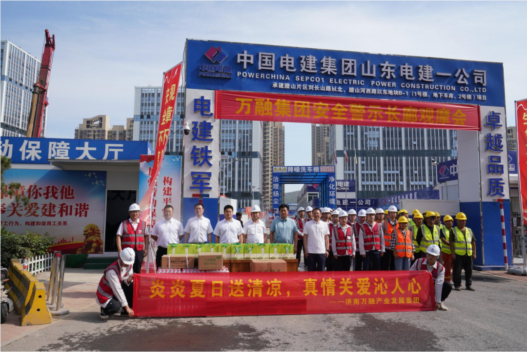 同時,與會領導向一線建設者送上防暑降溫慰問品。