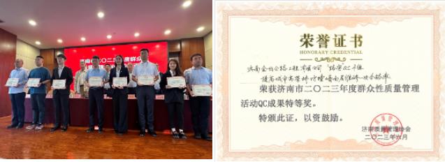 近日,建設(shè)集團(tuán)所屬金曰公司質(zhì)量管理成果喜訊頻傳。QC質(zhì)量管理小組獲省級(jí)榮譽(yù)33項(xiàng)、市級(jí)榮譽(yù)28項(xiàng);5個(gè)班組獲“全省交通行業(yè)信得過班組”稱號(hào),5個(gè)班組獲“濟(jì)南市2023年度質(zhì)量信得過班組”稱號(hào);公司獲評(píng)“2023年度群眾性質(zhì)量管理活動(dòng)優(yōu)秀組織單位”。