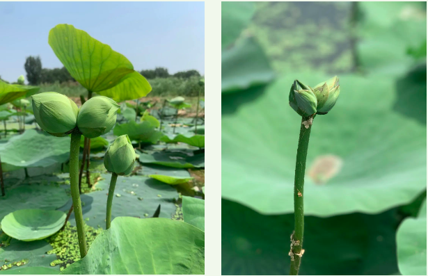 荷花通常生長在池塘、湖泊等水域環境中,花期6月至9月,且對陽光和養分要求較高。濟西濕地現有荷花400余種,睡蓮200余種,總種植面積約600畝。本次四朵并蒂蓮為同一品種天中翡翠,這也是濟西濕地景區首次同時發現四株并蒂蓮奇觀。