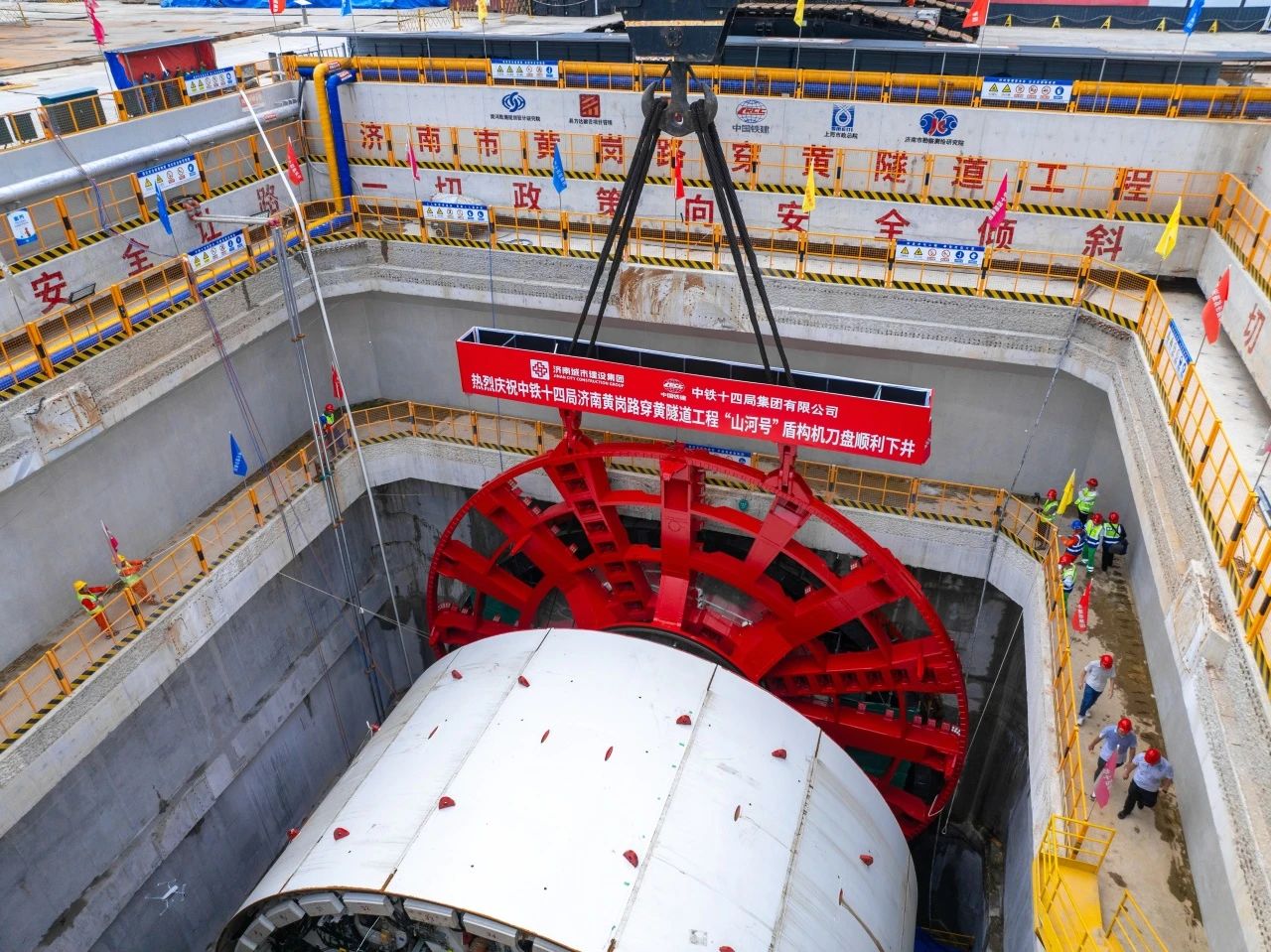 7月24日,由濟南城市建設(shè)集團投資建設(shè),中鐵十四局集團承建的濟南市黃崗路穿黃隧道迎來關(guān)鍵節(jié)點,“山河號”盾構(gòu)機刀盤吊裝下井,進入始發(fā)井預(yù)定位置,標志著世界最大直徑水下隧道盾構(gòu)始發(fā)進入“倒計時”。