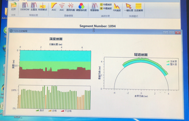 將彈性波智能檢測系統安裝在盾構機上,每環掘進工序完成后開啟檢測設備,項目技術人員通過掃描管片獲得壁后注漿效果圖,分析彈性波波形判斷注漿密實度,根據注漿密實度對注漿工序實時做出調整。