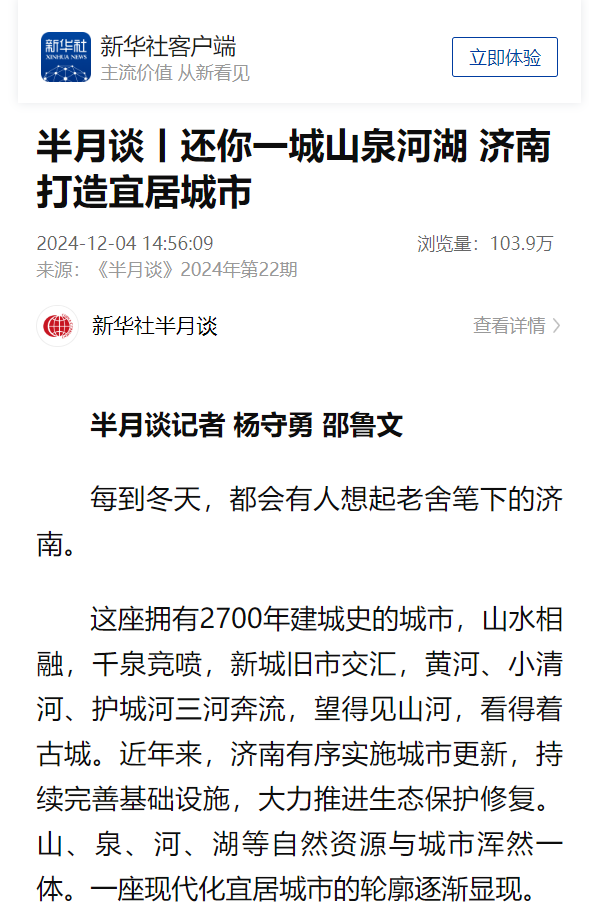 《半月談》刊文:還你一城山泉河湖,濟南打造宜居城市