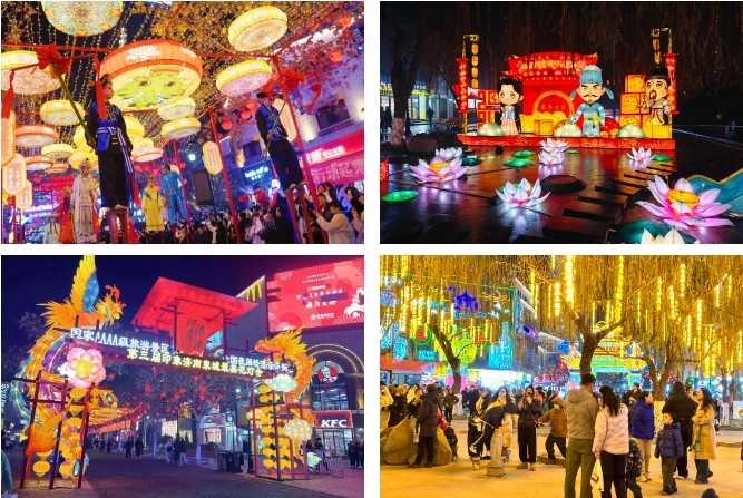 2025年元旦,印象濟南·泉世界推出“第四屆印象濟南‘泉城最美花燈會’”,打造“鯉魚躍龍門”巨型燈組,為游客帶來了一場視覺盛宴,活動將一直持續到3月1日(農歷二月二),春節期間街區將開展民俗扮玩、非遺市集、花果糖茶年貨大集展銷活動,景區內百店同慶,推出特色新品、美食優惠、購物抽獎等多樣福利,讓廣大市民游客在元旦、春節、元宵節期間能夠盡情游玩賞燈、打卡互動、闔家團圓、朋友聚會,共同度過歡樂祥和的節日時光。