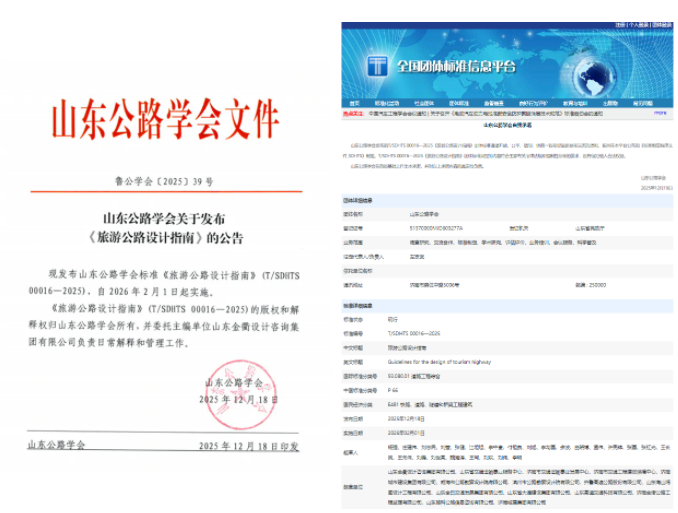 近日,由建設(shè)集團(tuán)所屬山東金衢設(shè)計(jì)咨詢集團(tuán)有限公司主編的《旅游公路設(shè)計(jì)指南》(以下簡稱《指南》)正式發(fā)布,將于2026年2月1日全面實(shí)施。作為山東省首部系統(tǒng)規(guī)范旅游公路設(shè)計(jì)的技術(shù)標(biāo)準(zhǔn),《指南》填補(bǔ)了省內(nèi)該領(lǐng)域標(biāo)準(zhǔn)體系的空白,標(biāo)志著山東“交通+旅游”深度融合邁入標(biāo)準(zhǔn)化發(fā)展新階段。