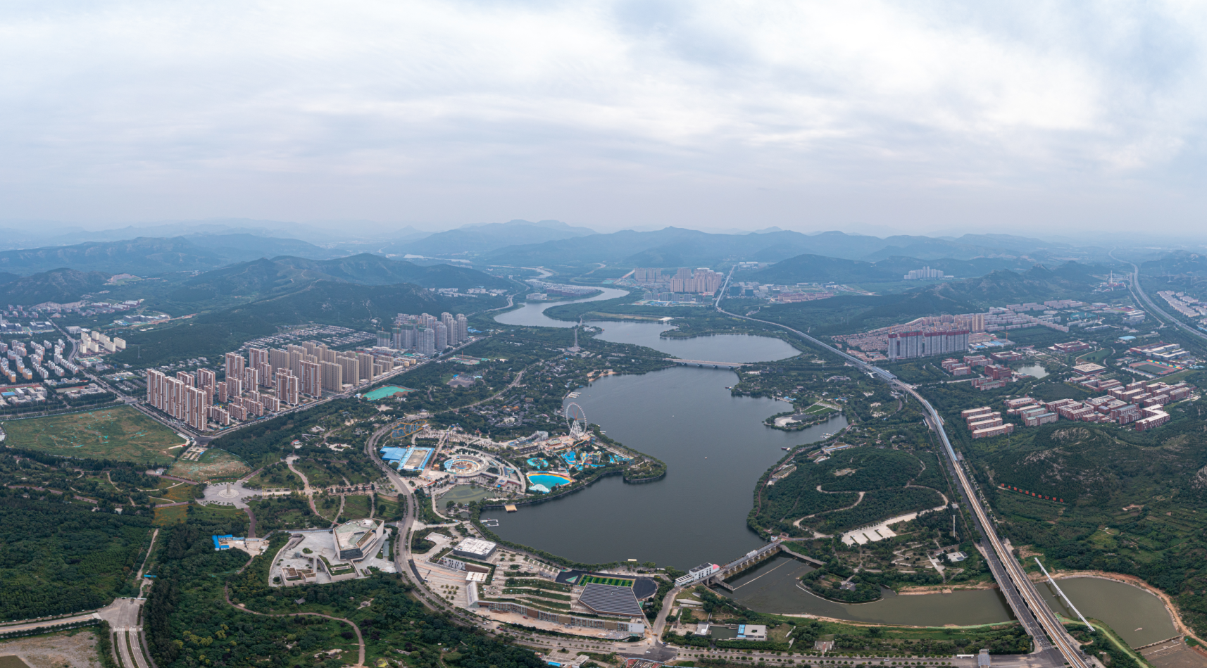 長清大學城片區東起京福、京滬高速公路,西、北至濟菏高速公路,南至崮山鎮以南一帶山體,總規劃總面積43平方公里,其中城市建設用地29平方公里。按照規劃,大學科技園將形成“一軸、兩心、多組團”的城市發展結構,一軸即沿大沙河的生態景觀軸,兩心即依托園博園形成的現代產業核心和依托文化創意形成的綜合功能中心,多組團即高校、居住、研發產業、生態旅游、休閑度假等多個功能組團。片區將逐步成為具有高教科研、生態居住、商業流通、商務辦公、旅游服務、文化產業等功能的城市新區。